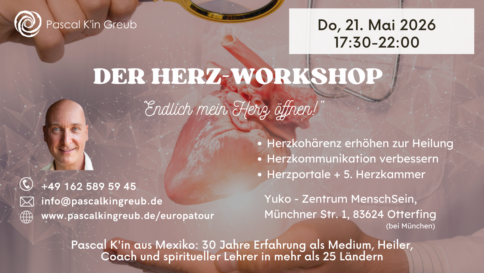 Pascal K’in zeigt dir den Zugang zu deinem Seelenplan: wenn du ihn kennst, geht alles einfach, fliesst in Fülle und alles was du tust, zeigt dir schon den nächsten Schritt im Leben, von alleine! – Bitte lebe in Hülle und Fülle! … deshalb hast du hier inkarniert. Erhalte Seelen-Medizin sowie eine eindrückliche Seelen-Triaden-Meditation, trete in Dialog mit deiner Seele und entfalte deine Schöpferkraft. Bringe eine Liste mit, was nicht und was ja funktioniert hat bisher in deinem Leben! – Davor Möglichkeit zu wenigen Einzelsitzungen.