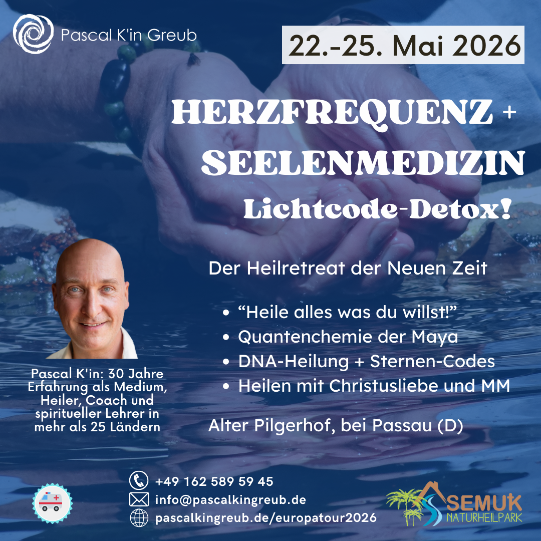 Ein Teil des Reinerlöses der Europtour geht wie immer direkt in die Vereinskasse von Tiempo del Corazón / Herzzeit für die sozialen Projekte und notwendigen Reparaturarbeiten im Heilzentrum SEMUK in Mexiko. Du kannst dich auch bei uns direkt anmelden, gerne senden wir dir die Bankdaten zur direkten Überweisung. Kinder sind herzlich willkommen! Bis zum vollendeten neunten Lebensjahr bitten wir um eine Spende von mindestens 50 Euro für das Heilzentrum in Mexiko, danach normaler Preis. Für inhaltliche und therapeutische Fragen wird es eine Ehre sein, dich zu bedienen und alle Fragen und Zweifel dir persönlich zu beantworten. Dazu sendest du uns am besten eine Email an info@pascalkingreub.de oder ein Whatsapp oder Telegram an +521 797 112 3538 . – Wir freuen uns auf dich!